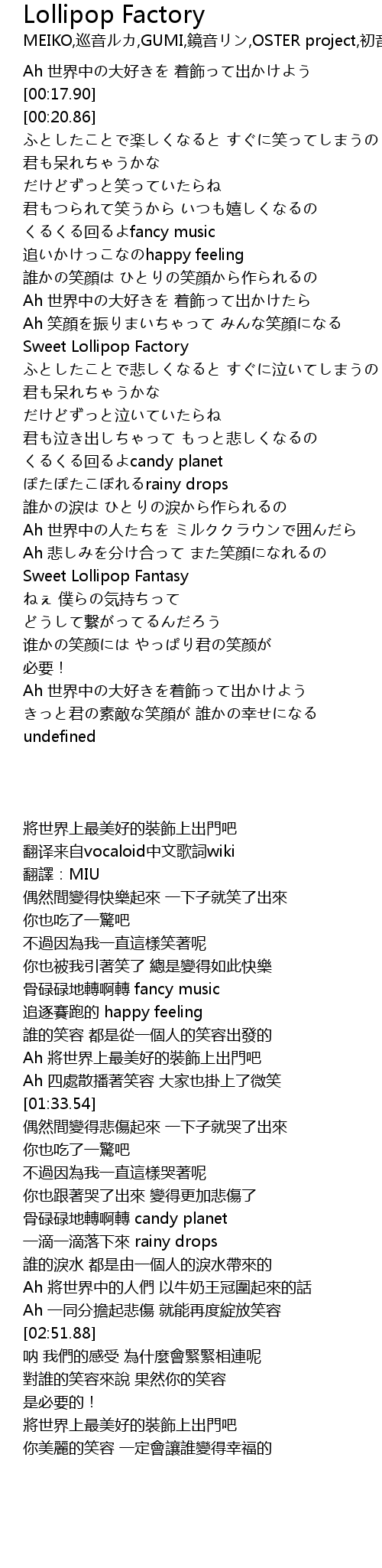 | [01:33.54] | Sweet Lollipop Factory |