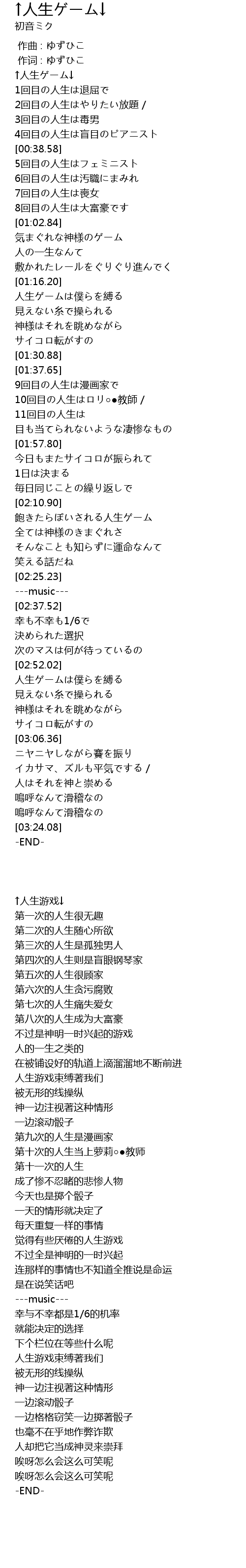 | [00:02.06] | ↑人生ゲーム↓ |