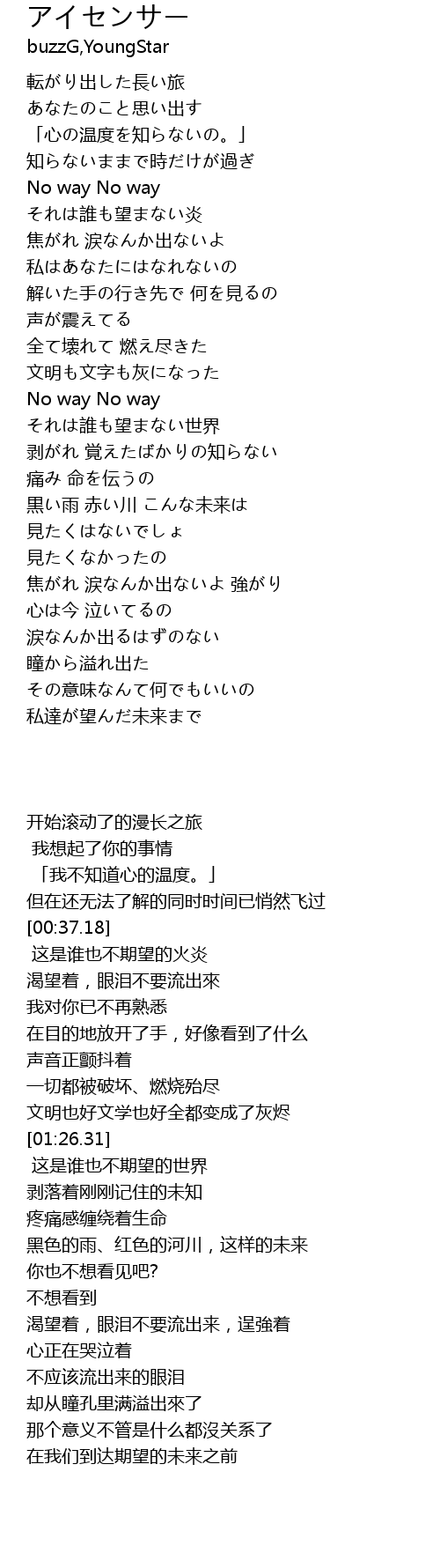 | [01:16.02] | 全て壊れて 燃え尽きた |