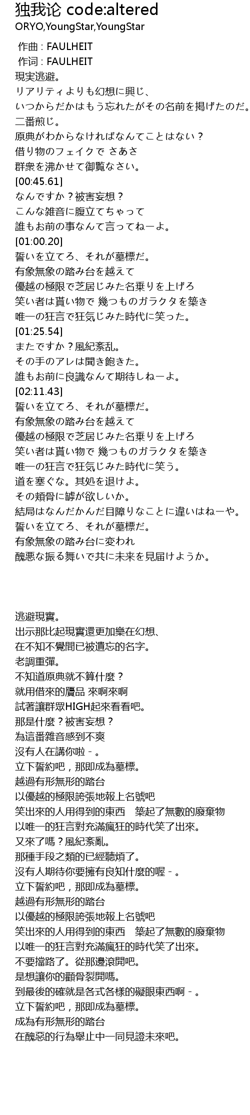 | [02:22.50] | 以優越的極限誇張地報上名號吧 |
