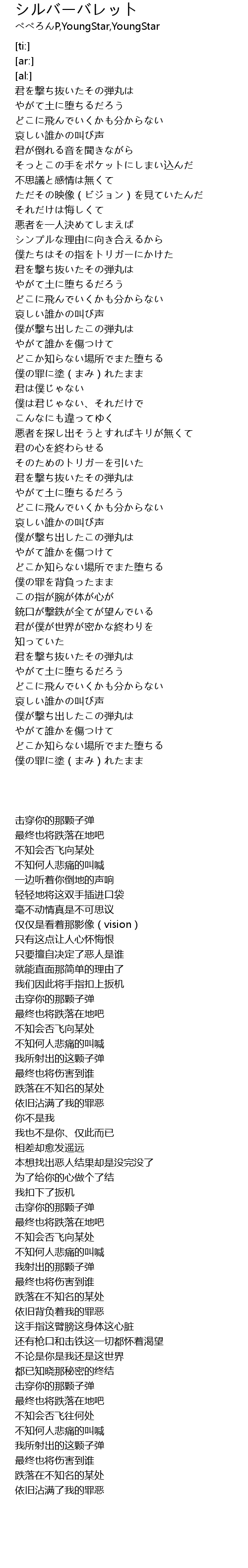 | [00:24.48] | 君を撃ち抜いたその弾丸は |