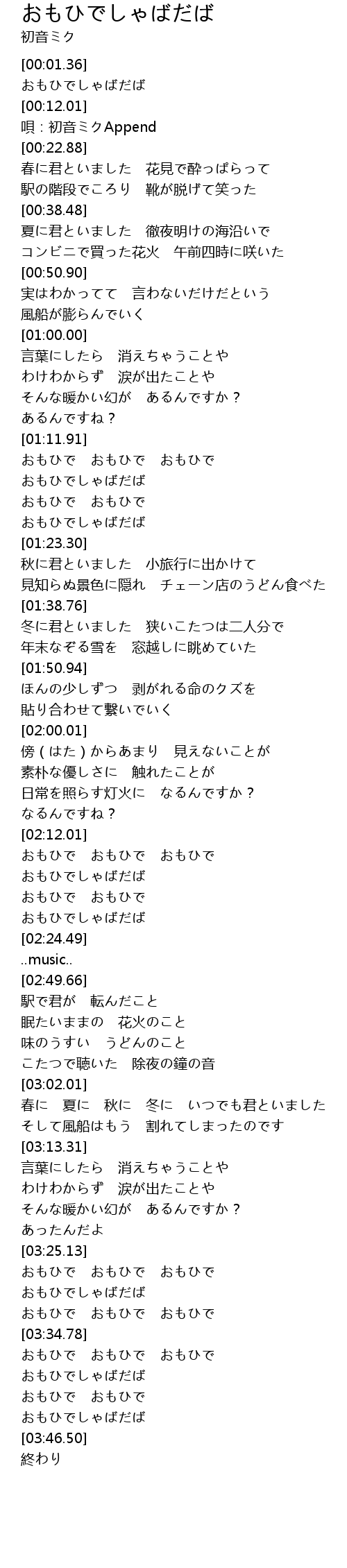 | [03:02.36] | 春に 夏に 秋に 冬に いつでも君といました |