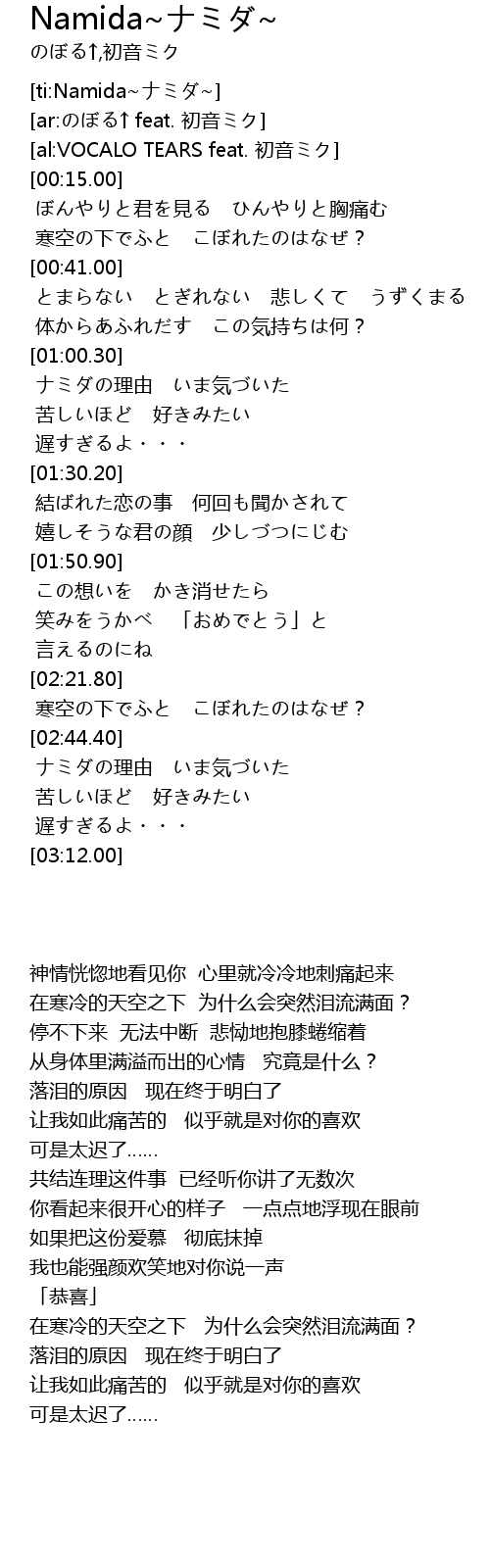 | [ti:Namida~ナミダ~] | |