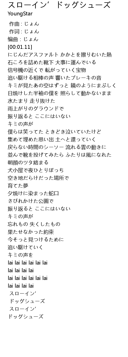 | [00:44.16] | 追い駆ける相棒の声 響いたブレーキの音 |