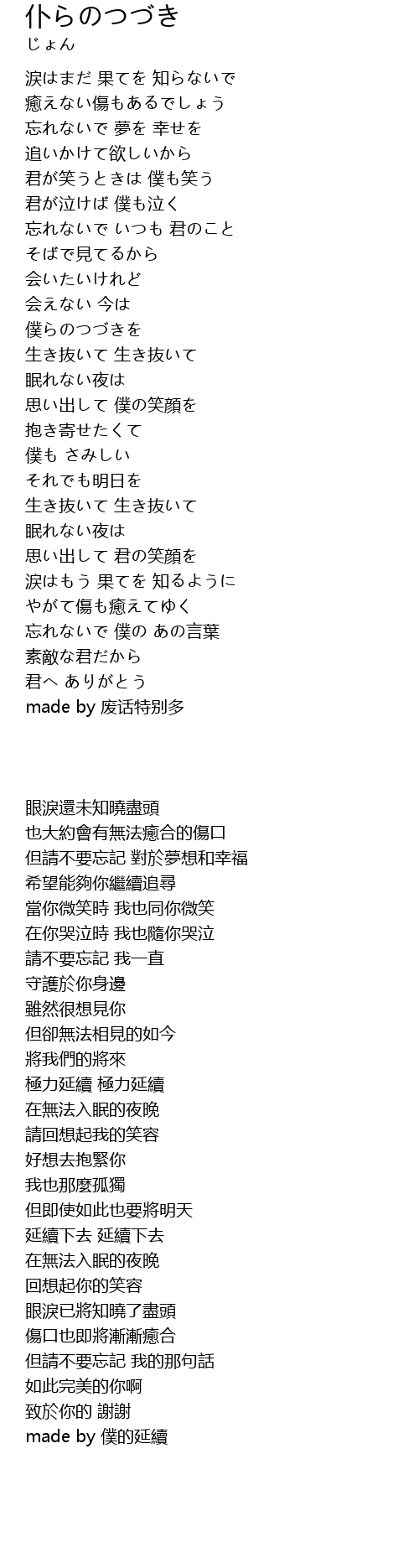 | [01:16.13] | 思い出して 僕の笑顔を |