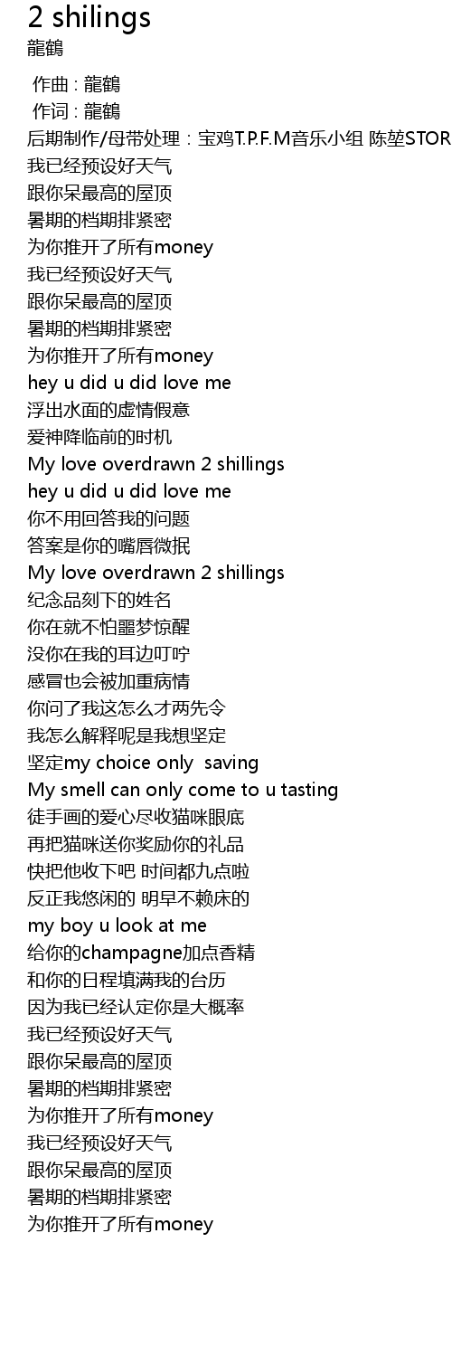 | 歌曲 | 2 shilings |