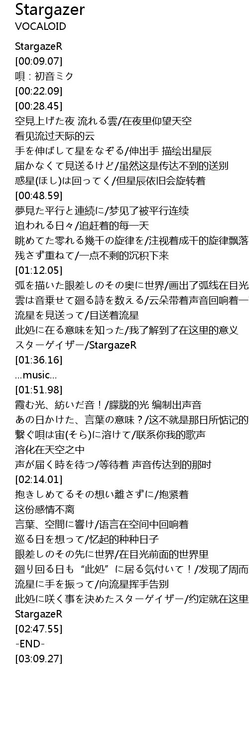 | [02:36.12] | 流星に手を振って/向流星挥手告别 |