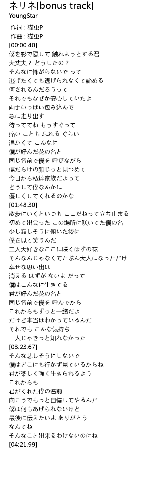 | [02:59.99] | 同じ名前で僕を 呼んでから |