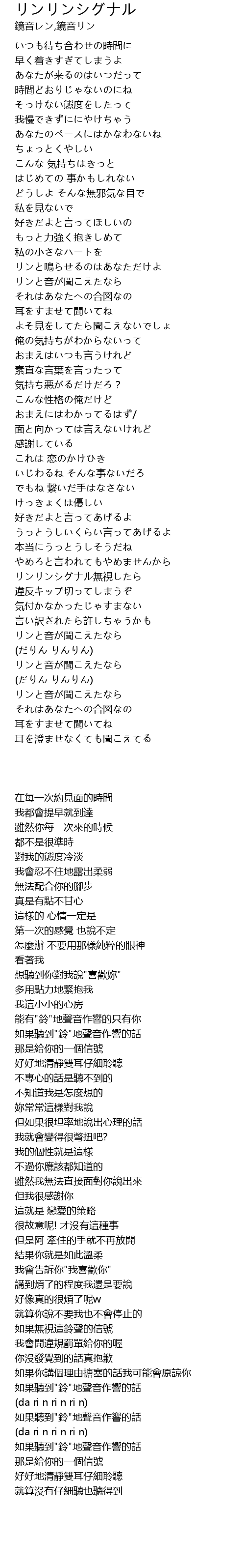 | [01:13.699] | リンと鳴らせるのはあなただけよ |