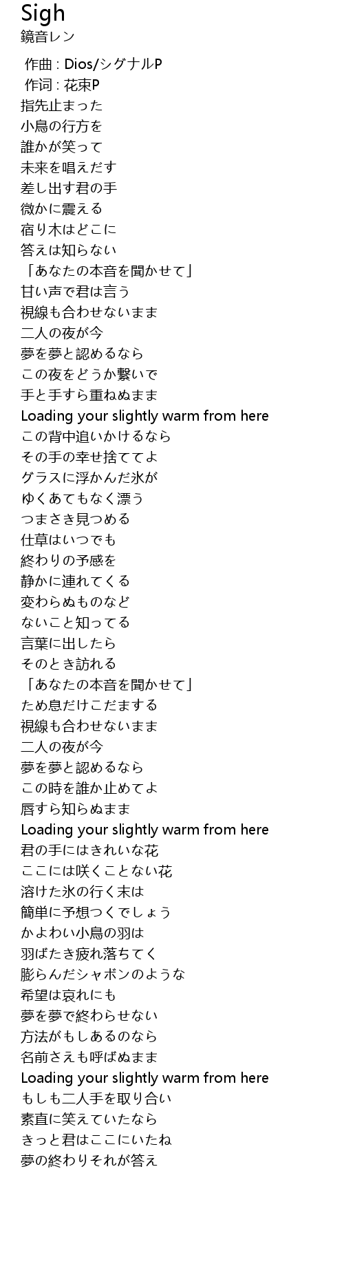 | [00:00.00] | 作曲 : Dios/シグナルP |
