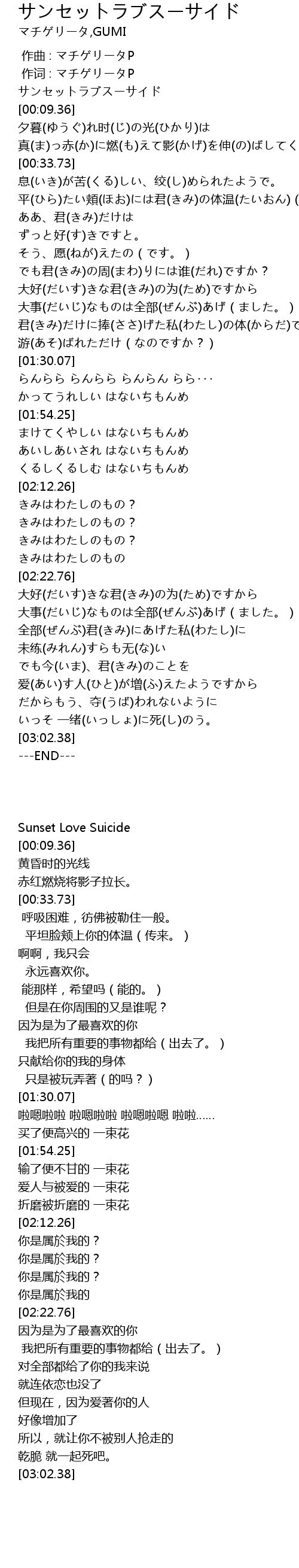 | [00:00.87] | Sunset Love Suicide |