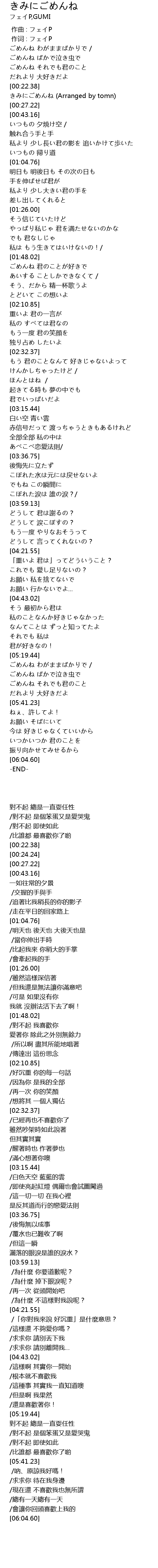 | [00:24.24] | きみにごめんね (Arranged by tomn) |