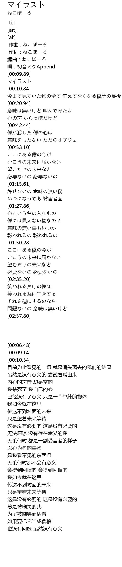 | [02:51.65] | 問題ないの 意味は無いけど |