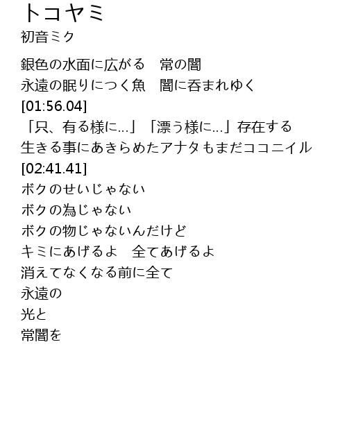| [01:41.85] | 永遠の眠りにつく魚 闇に呑まれゆく |
