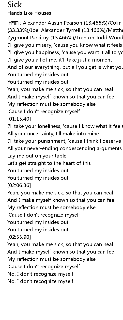 | [02:09.42] | Yeah, you make me sick, so that you can heal |