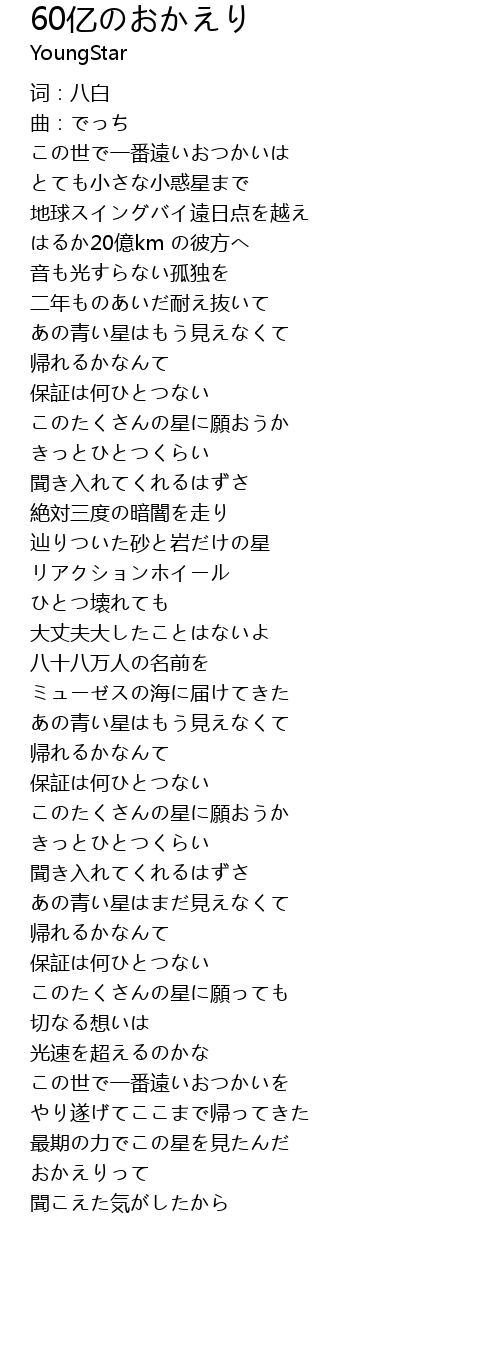 | [00:36.413] | はるか20億km の彼方へ |