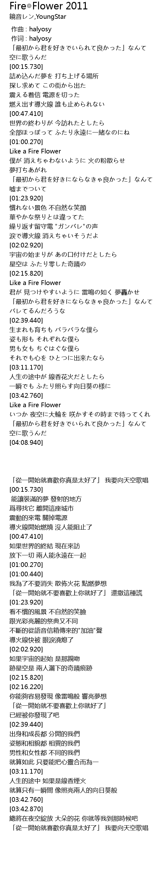 | [00:00.303] | zuò cí : halyosy |