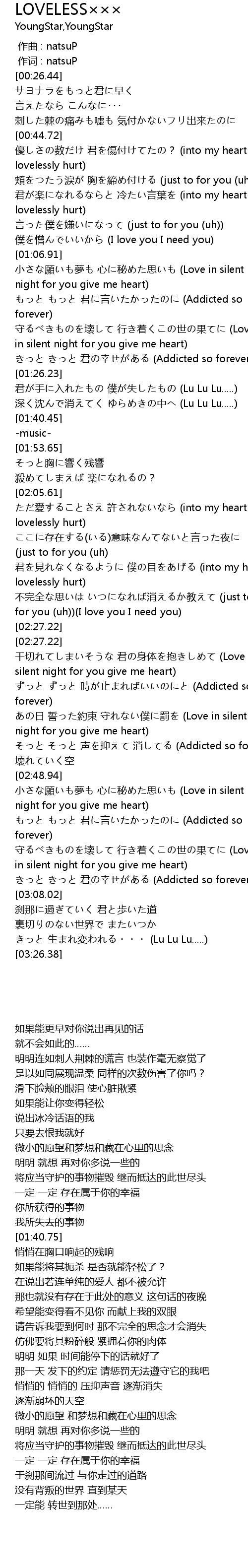 | [00:54.65] | jun le leng yan ye into my heart lovelessly hurt |