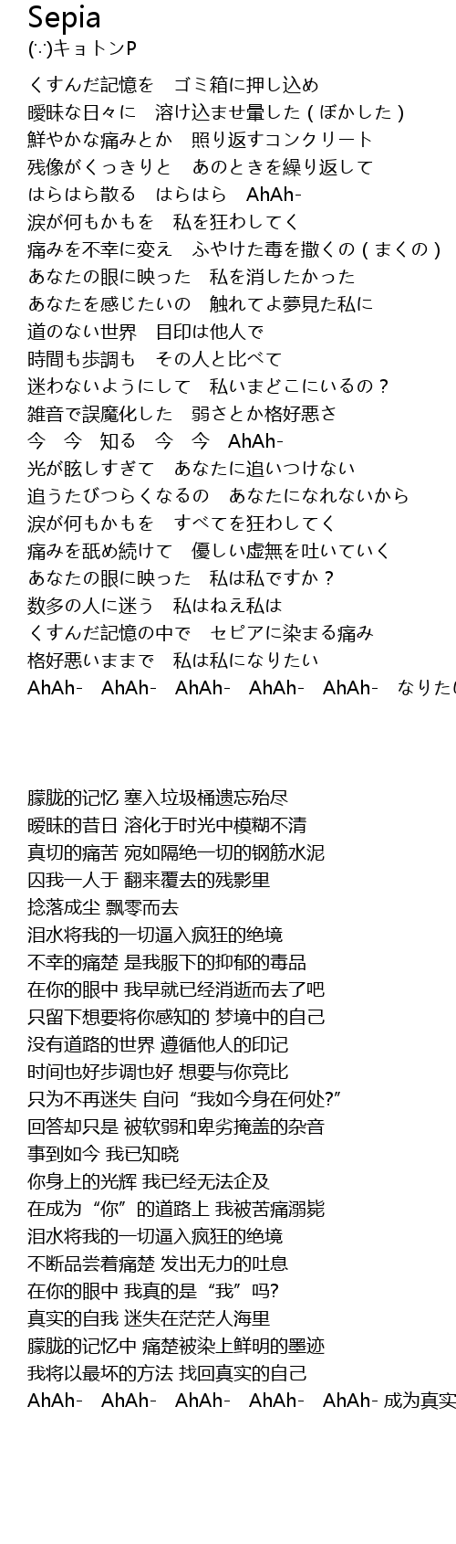 | [04:12.36] | くすんだ記憶の中で セピアに染まる痛み |