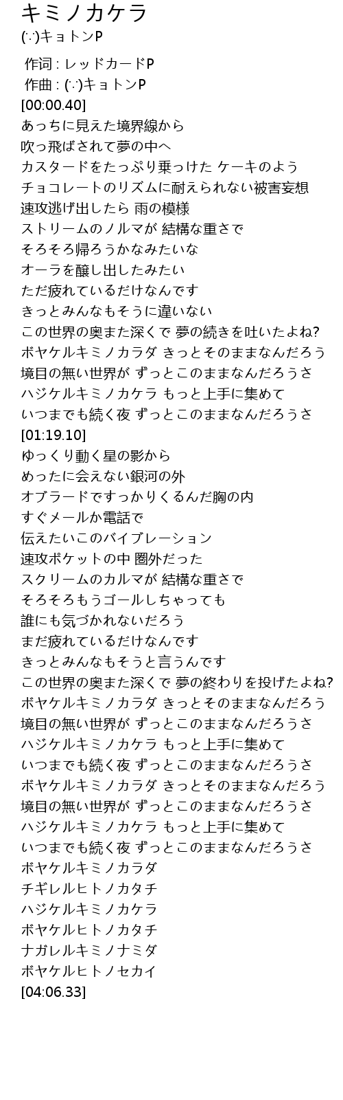 | [00:00.020] | 作曲 : (∵)キョトンP |