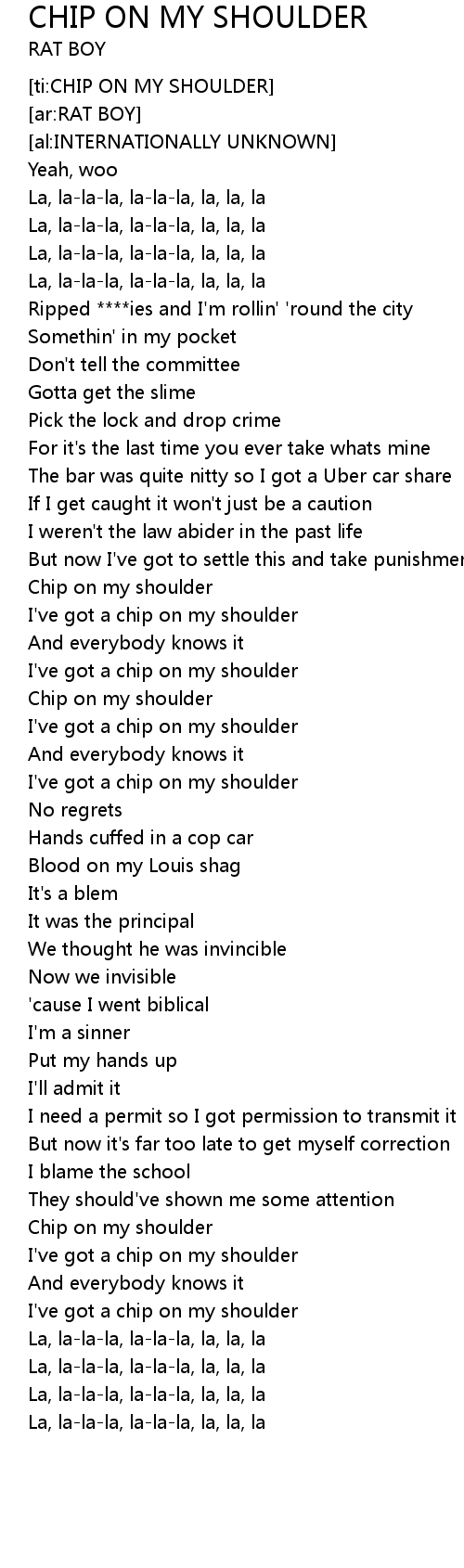 [00:23.50] Ripped ****ies and I'm rollin' 'round the city