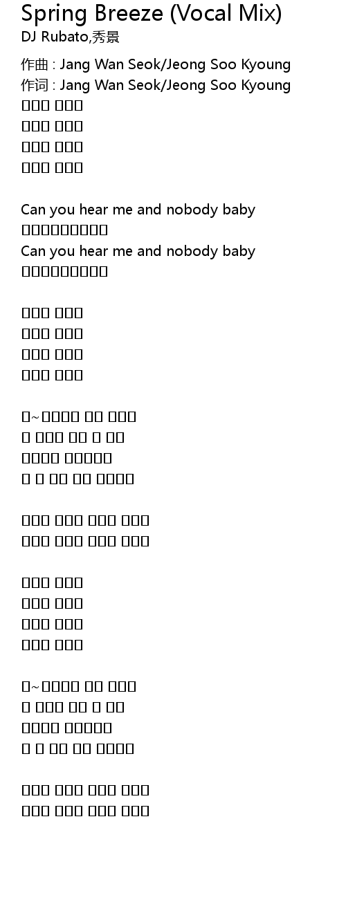 | 作词 : Jang Wan Seok/Jeong Soo Kyoung | |