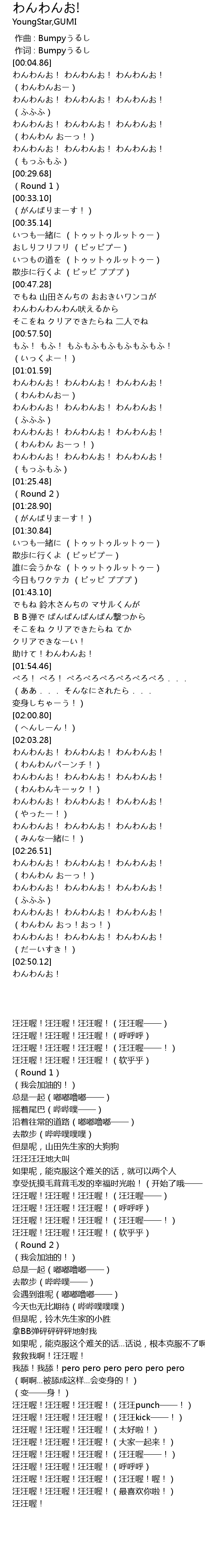 | [02:20.92] | わんわんお! わんわんお! わんわんお! (みんな一緒に!) |