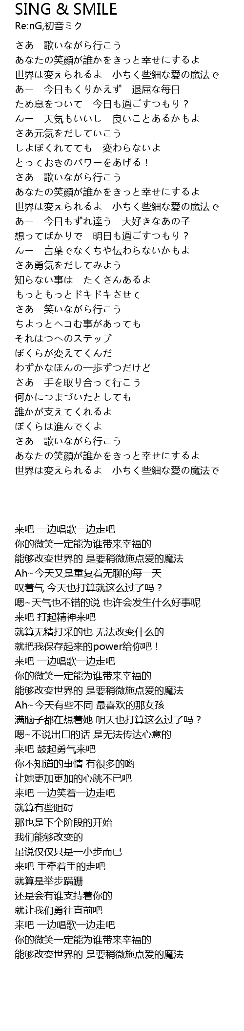 | [01:07.31] | あなたの笑顔が誰かをきっと幸せにするよ |