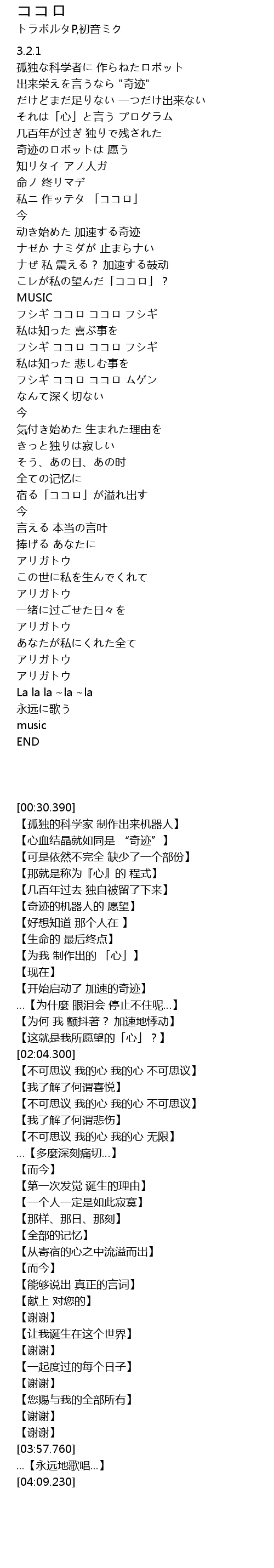 | [03:03.960] | 宿る「ココロ」が溢れ出す |