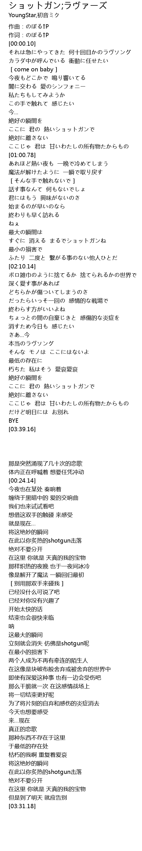 | [03:14.64] | 在此以你炙热的shotgun击落 |