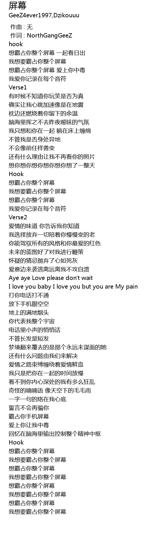 | [00:01.000] | 作词 : NorthGangGeeZ |