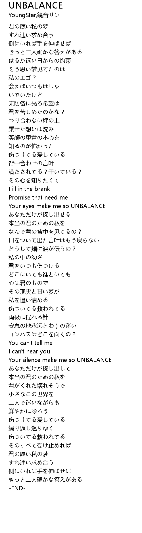| [03:01.995] | Your silence make me so UNBALANCE |