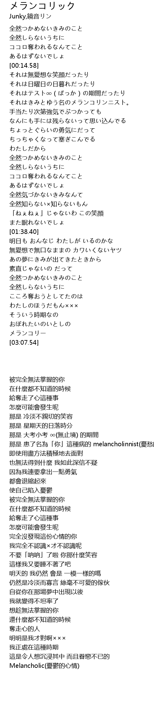 | [03:03.66] | Melancholic(憂鬱的心情) |
