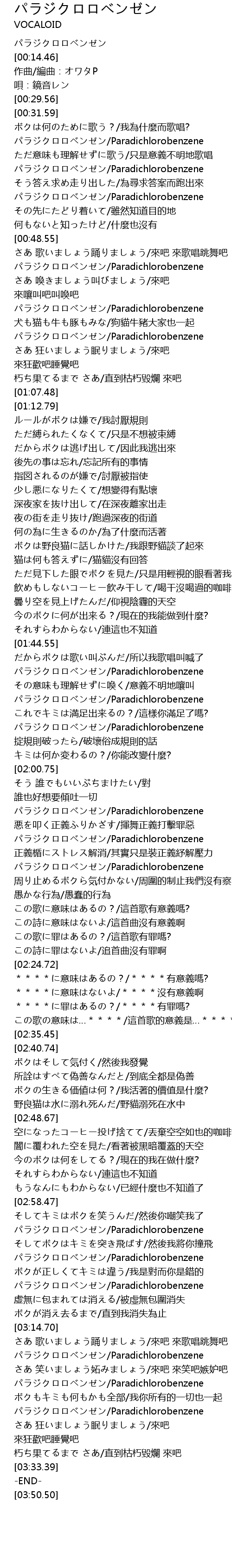 | [00:03.46] | パラジクロロベンゼン |