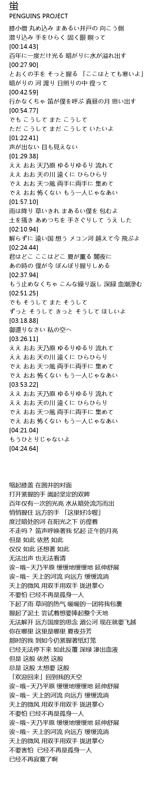 | [03:33.24] | ええ おお 天の川 遠くに ひらひらり |