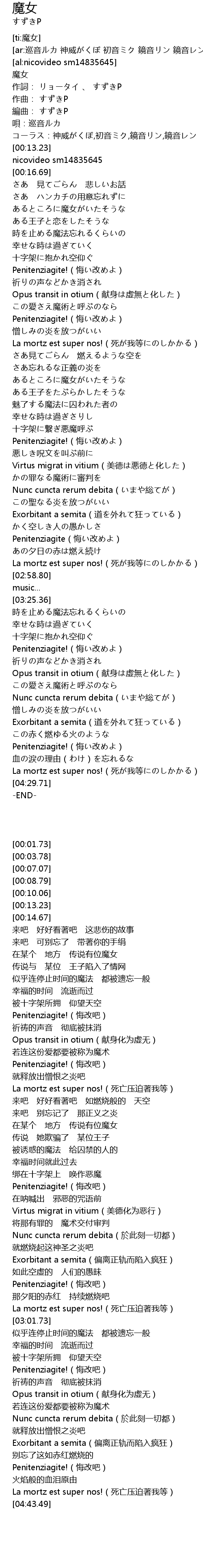 | [02:17.51] | Penitenziagite!(悔い改めよ) |