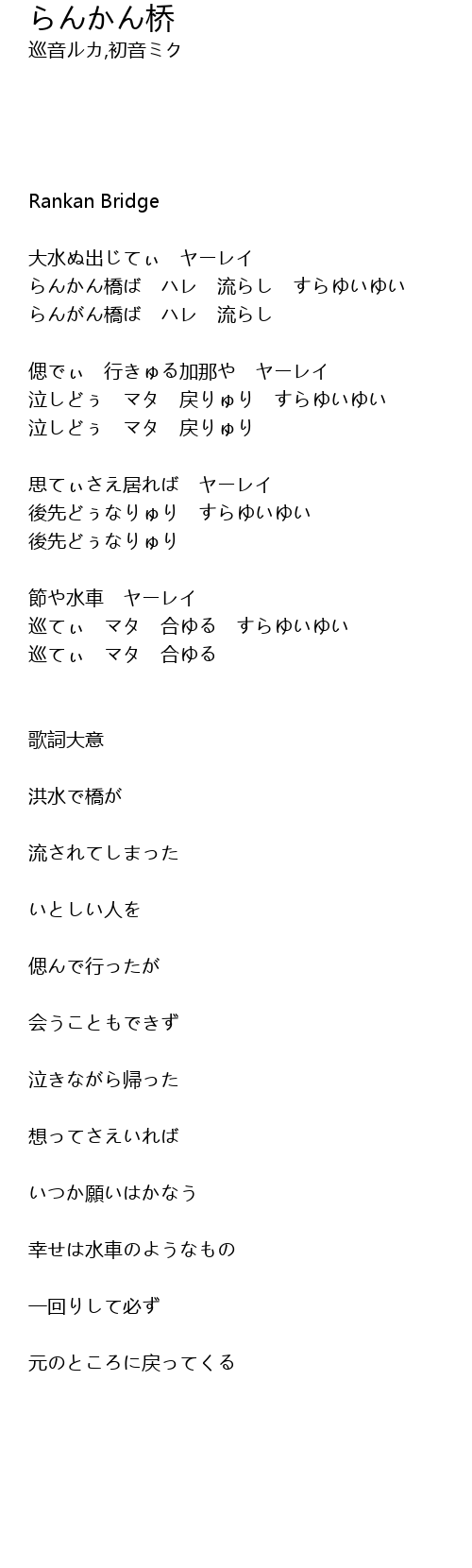 | [00:21.51] | らんかん橋ば ハレ 流らし すらゆいゆい |