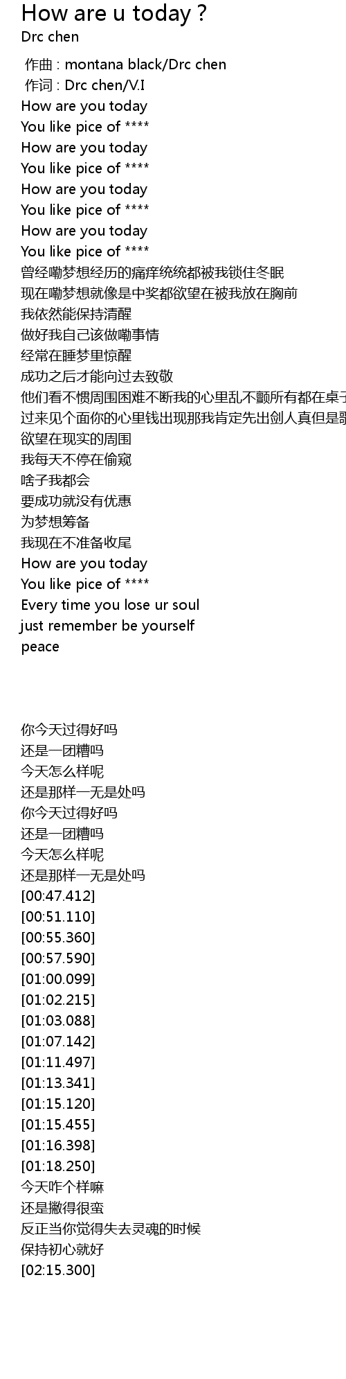 | [00:01.000] | 作词 : Drc chen/V.I |