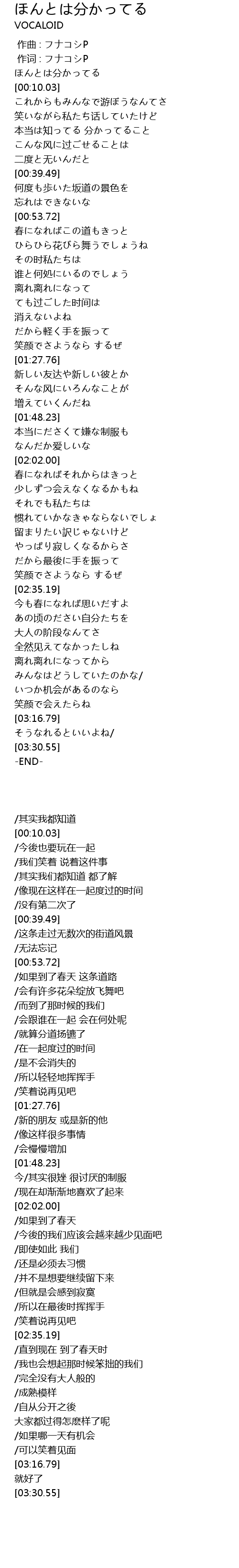 | [03:06.21] | みんなはどうしていたのかな/ |