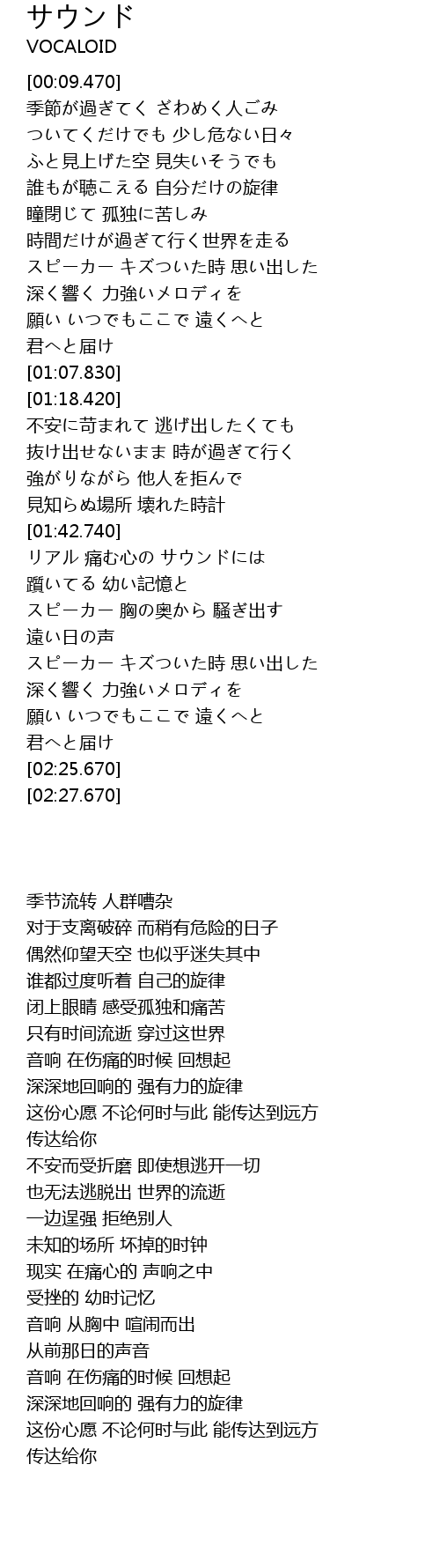 | [02:05.370] | スピーカー キズついた時 思い出した |