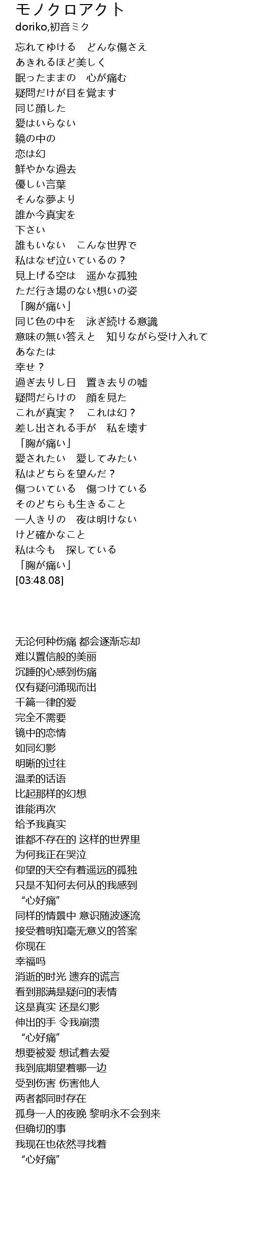 | [02:02.32] | 過ぎ去りし日 置き去りの嘘 |