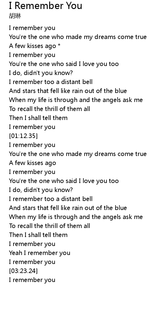 | [00:15.30] | I remember you |