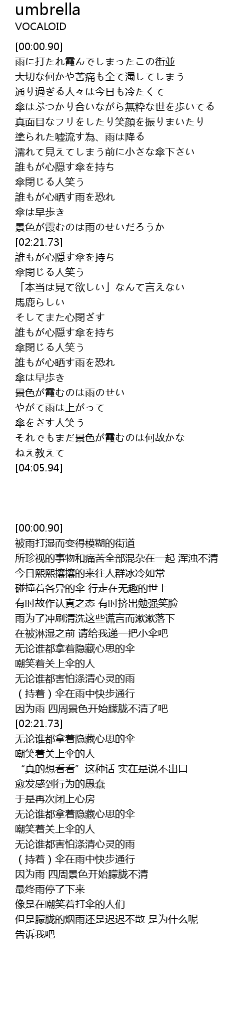 | [01:42.64] | 濡れて見えてしまう前に小さな傘下さい |