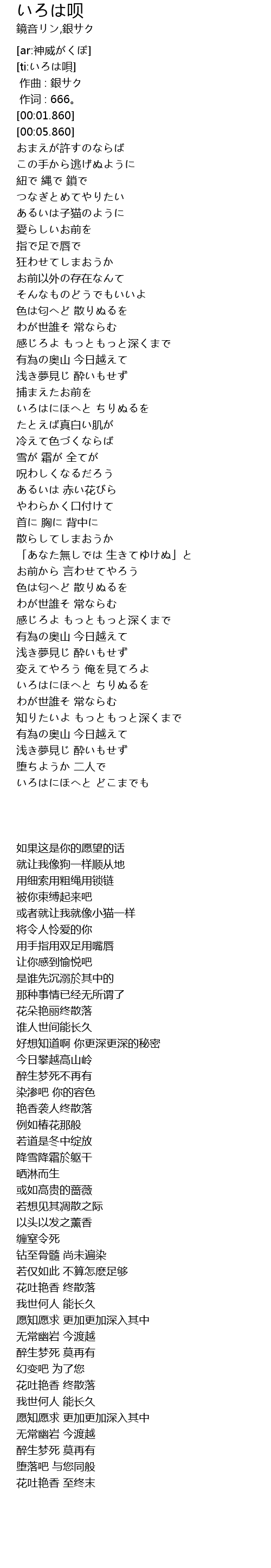 | [03:08.250] | いろはにほへと ちりぬるを |