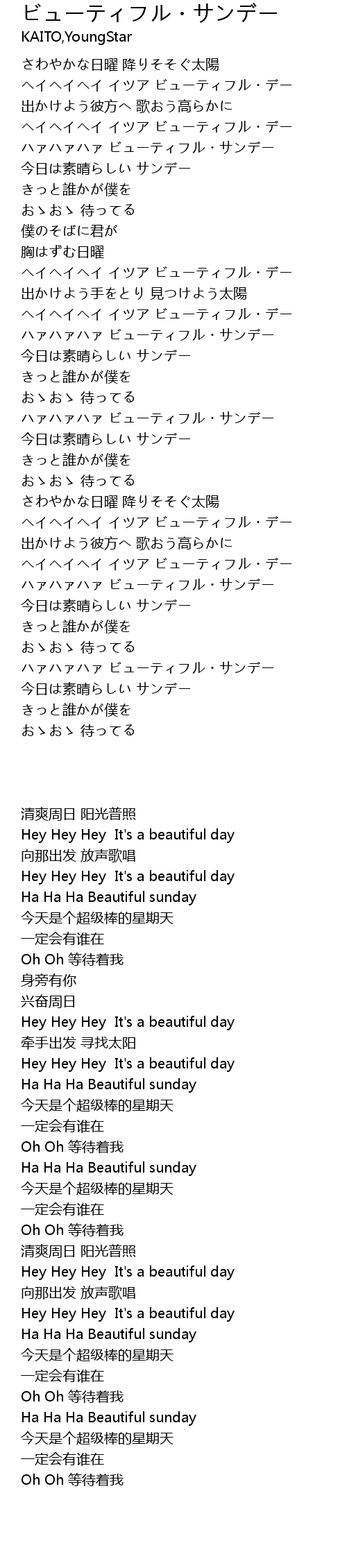 | [00:40.70] | Ha Ha Ha Beautiful sunday |