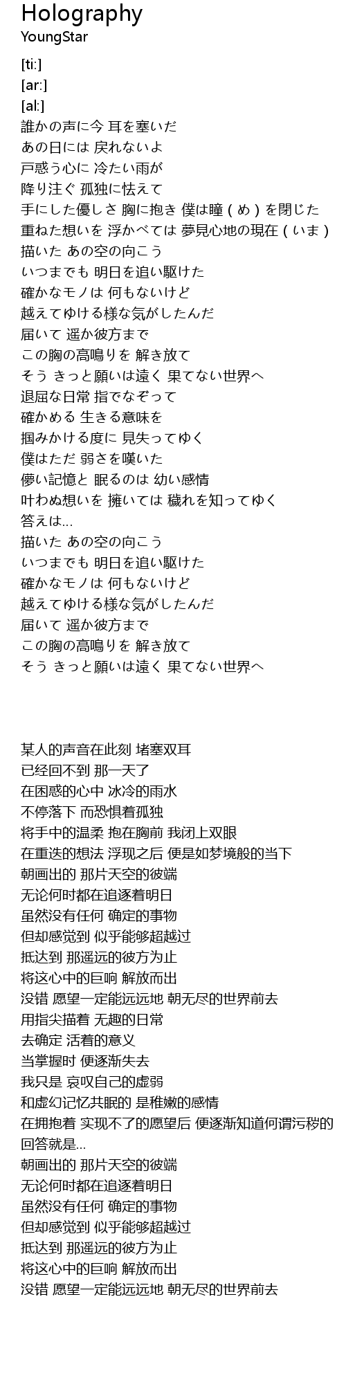 | [02:24.75] | 在拥抱着 实现不了的愿望后 便逐渐知道何谓污秽的 |