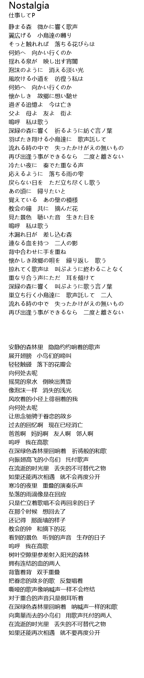 | 歌曲 | Nostalgia |