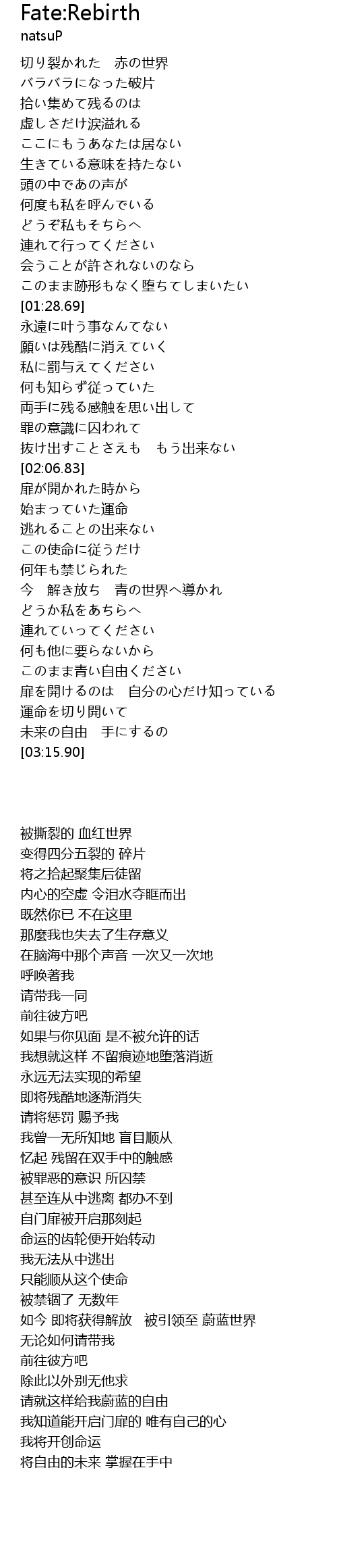| [02:35.46] | 如今 即将获得解放 被引领至 蔚蓝世界 |