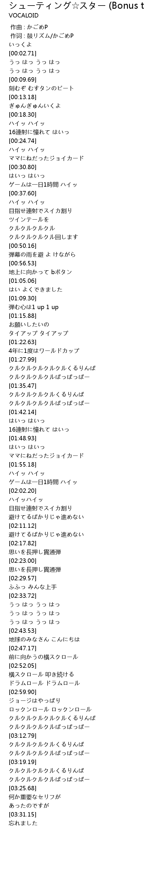 | [03:09.76] | クルクルクルクルぱっぱっぱー |