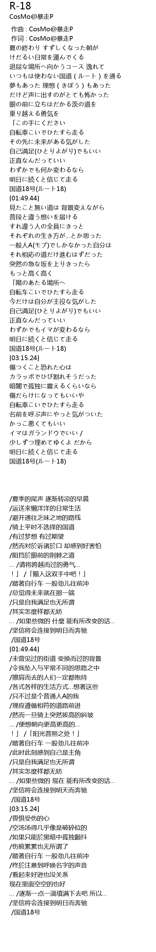 | [00:45.94] | 退屈な場所へ向かうコース 逸れて |